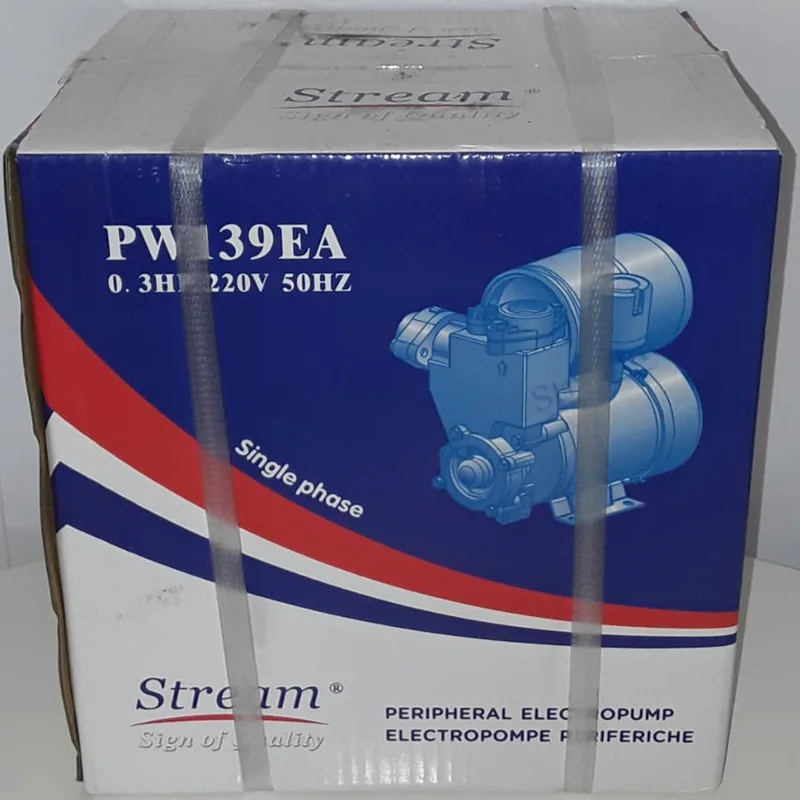 بوسترپمپ استریم یک پمپ کوچک برای داخل واحد می باشد که اتوماتیک و منبع تحت فشار روی آن نصب است و به دلیل کوچک بودن ابعاد فضای بسیار کمی اشغال می کند. نصب این پمپ ها بسیار ساده هستند و نیاز به لوله کش ندارد. بدنه این پمپ از جنس چدن و پروانه آن از متریال برنج ساخته شده است، بنابراین مقاومت بسیار بالایی دارد. از مزایای این پمپ می توان به ایجاد فشار نسبتا بالا با قدرت موتور پایین اشاره کرد. اتصالات ورودی و خروجی در پمپ اتوماتیک Stream مدل PW-139EA با اندازه ی 1 اینچ طراحی شده است. الکتروموتور در این پمپ از نوع 2900 دور بر دقیقه می باشد که به همراه محافظ حرارتی عرضه می شود تا از گرم شدن بیش از حد موتور جلوگیری شود. همچنین برق مصرفی در پمپ تمام اتومات استریم به صورت تک فاز می باشد.