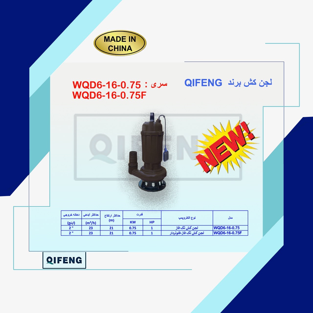 لجن کش 2 اینچ 16 متری فلوتردار تکفاز QIFEING مدل SWQD6-16-0.75F