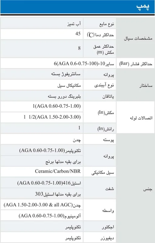 مزایای پمپ آب ابارا مدل AGA 1.00 M-L ECONOMY: